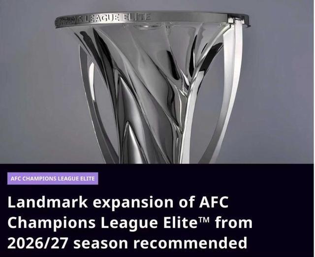 4月14日,亚足联通过官方渠道发布公告称,他们计划从2026-2027赛季开始,将亚冠精英联赛正赛的规模由现有的24队增容至32队。其中东、西亚大区各16队,并设置淘汰赛附加赛。相关决议经亚足联执行委员会批准后将生效。淘汰赛阶段附加赛将不会在2026/27赛季马上实施,计划在后续赛季中引入。综合目前亚足联各会员协会技术积分排名情况看,中国足协有可能在下赛季多获得0.5个亚冠精英联赛正赛名额。
